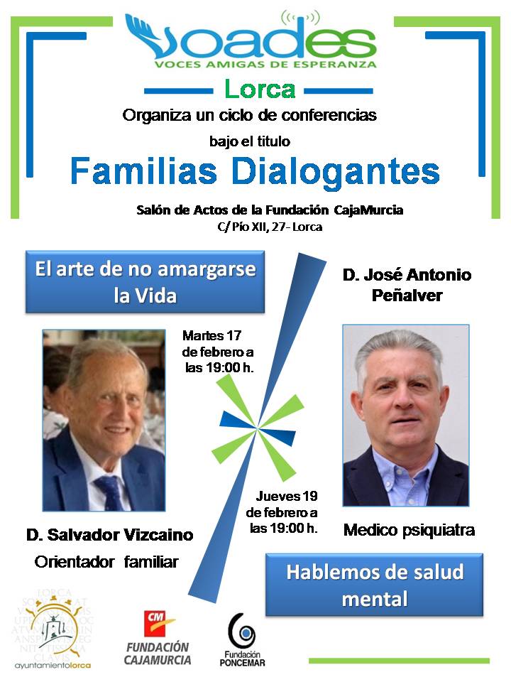 Ciclo de Conferencias: Familias Dialogantes. Martes, 17 y jueves, 19 de febrero de 2026. Horario: a las 19:00 horas. En Lorca.