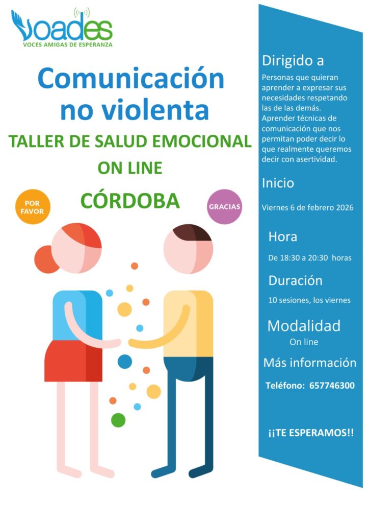 Taller de Comunicación No Violenta(ON LINE). Inicio el viernes 6 de febrero de 2026. Horario: de 18:30 a 20:30. ON LINE.